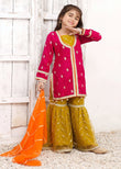Our Gharara features a stylish flared bottom, elegant detailing, and a perfectly stitched top that adds charm and grace to your girlâs personality. Ideal for both casual wear and formal events, this outfit guarantees compliments wherever she goes.